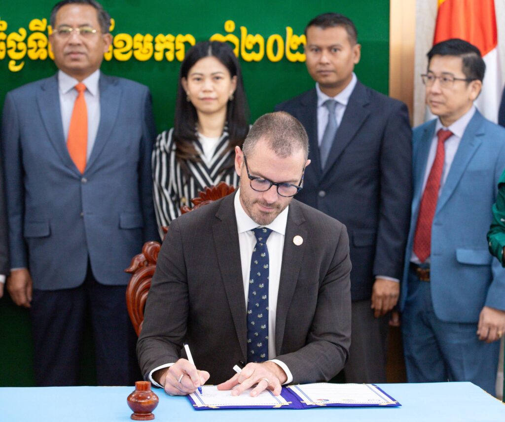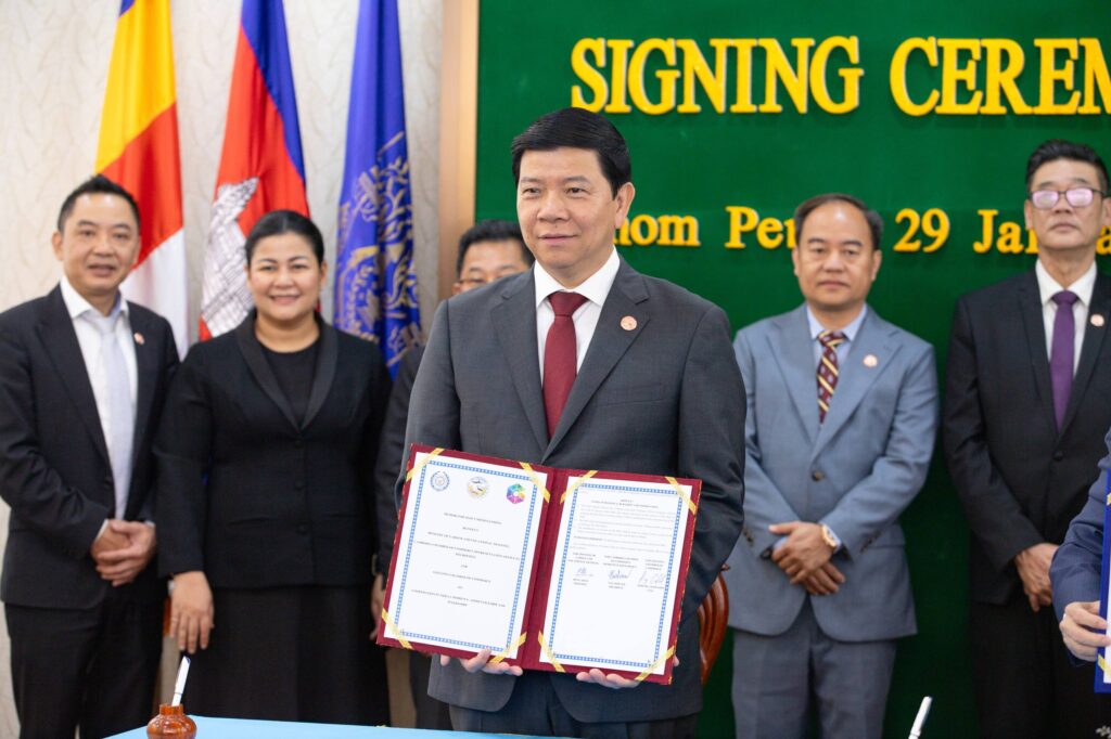 (ភ្នំពេញ)៖ លោក ហេង សួរ រដ្ឋមន្ត្រីក្រសួងការងារ និងបណ្ដុះបណ្ដាលវិជ្ជាជីវៈ លោក តាំង សិទ្ធី ប្រធានការិយាល័យតំណាងសភាពាណិជ្ជកម្មកម្ពុជា ប្រចាំទីក្រុងម៉ែលប៊ន និងលោក Jeremy Crawford នាយកប្រតិបត្តិសភាពាណិជ្ជកម្មប្រចាំទីក្រុងហ្គីឡុង នៃរដ្ឋវីតូរីយ៉ា ប្រទេសអូស្ត្រាលីបានចុះអនុស្សរណៈនៃការយោគយល់គ្នា (MoU)ស្តីពី «សហប្រតិបត្តិការនៅក្នុងការផ្លាស់ប្តូរជំនាញ ការបណ្ដុះបណ្ដាលសិស្សហ្វឹកហាត់ និងការហ្វឹកហាត់ការងារ» នាព្រឹកថ្ងៃទី២៩ ខែមករា ឆ្នាំ២០២៦ នាទីស្តីការក្រសួង។ គោលបំណងដ៏សំខាន់នៃ MOU នេះគឺដើម្បីបង្កើតកិច្ចសហការលើការបណ្តុះបណ្តាលសិស្សហាត់ការ និងការអនុវត្តការងារជាក់ស្តែងតាមស្តង់ដាអូស្រ្តាលី។ នេះជាក្របខណ្ឌនៃកិច្ចសហប្រតិបត្តិការដ៏មានអត្ថប្រយោជន៍ សំដៅលើការសហការគ្នានៅក្នុងនោះរួមមាន៖ (១)ការអភិវឌ្ឍ និងការអនុវត្តកម្មវិធីសិស្សហាត់ការ និងកម្មវិធីហាត់ការងារ (២)ការបញ្ជូន និងការទទួលសិស្ស និងអ្នកហ្វឹកហាត់ សម្រាប់ការផ្លាស់ប្តូរជំនាញ ការសិក្សាសិស្សហាត់ការ និងការហាត់ការងារ នៅប្រទេសអូស្ត្រាលី និង (៣)ការលើកកម្ពស់ និងការសម្របសម្រួលបណ្តាញ និងភាពជាដៃគូ រវាងស្ថាប័នបណ្តុះបណ្តាល។ កិច្ចសហការនេះ ក៏នឹងបើកផ្លូវឱ្យមានកម្មវិធីអាហារូបករណ៍ និងការផ្លាស់ប្តូរផងដែរ ដែលផ្តល់ឱកាសដល់សិក្ខាកាមកម្ពុជា គ្រូបណ្តុះបណ្តាល TVET និងសិស្សនិស្សិតចូលរួមក្នុងការសិក្សា និងវគ្គបណ្តុះបណ្តាលរយៈពេលខ្លី និងរយៈពេលវែង ដែលជួយលើកកម្ពស់ការផ្លាស់ប្តូរវប្បធម៌ និងការផ្ទេរជំនាញផងដែរ។ នាឱកាសនោះ លោករដ្ឋមន្ត្រី បានវាយតម្លៃខ្ពស់ចំពោះកិច្ចសហប្រតិបត្តិការដ៏មានសារៈសំខាន់នេះ ដែលជាយន្តការមួយក្នុងការកសាងមូលធនមនុស្សឱ្យមានផលិតភាពខ្ពស់ ជំនាញច្បាស់លាស់ប្រកបដោយស្តង់ដា និងមនសិការវិជ្ជាជីវៈបន្ថែមទៀត ដើម្បីឆ្លើយតបតាមតម្រូវការទីផ្សារការងារទាំងក្នុង និងក្រៅប្រទេស ក៏ដូចជាការវិវត្តយ៉ាងឆាប់រហ័សនៃបច្ចេកវិទ្យាឌីជីថលសកល។ លោកបានគូសបញ្ជាក់ថា កិច្ចសហការនេះ ជាការបង្ហាញនូវទំនាក់ទំនងល្អ រវាងកម្ពុជា និងអូស្ត្រាលី ហើយក៏ជាការបើកទំព័រថ្មី ប្រកបដោយអត្ថន័យក្នុងប្រវត្តិសាស្ត្រលើវិស័យបណ្តុះបណ្តាលវិជ្ជាជីវៈរបស់កម្ពុជា។ ទន្ទឹមនឹងនេះ លោករដ្ឋមន្រ្តីមានការជឿជាក់យ៉ាងមុតមាំថា តាមរយៈកិច្ចសហប្រតិបត្តិការនេះ កម្ពុជាអាចជំរុញការអភិវឌ្ឍធនធានមនុស្ស ប្រកបដោយគុណភាពខ្ពស់ស្របតាមស្តង់ដាការងារ ដែលអាចឆ្លើយតបនឹងតម្រូវការកម្លាំងពលកម្មក្រៅប្រទេសទាំងពេលបច្ចុប្បន្ន និងអនាគតផងដែរ៕